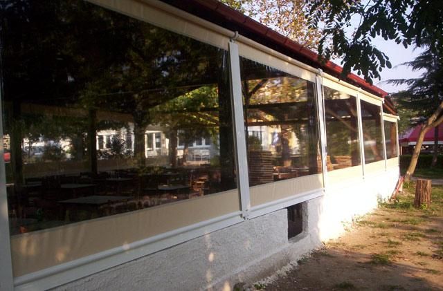 Η Μακεδονική Τεντοποιία στη Θεσσαλονίκη κατασκευάζει και τοποθετεί διαφανείς ζελατίνες -με και χωρίς οδηγούς- ιδανικές για το κλείσιμο εξωτερικών χώρων σε ιδιωτικούς και επαγγελματικούς χώρους, όπως εστιατόρια, ταβέρνες, καφετέριες και snack-bar. Υλικά υψηλής ανθεκτικότητας, για απόλυτη προστασία από τη βροχή και τον αέρα.